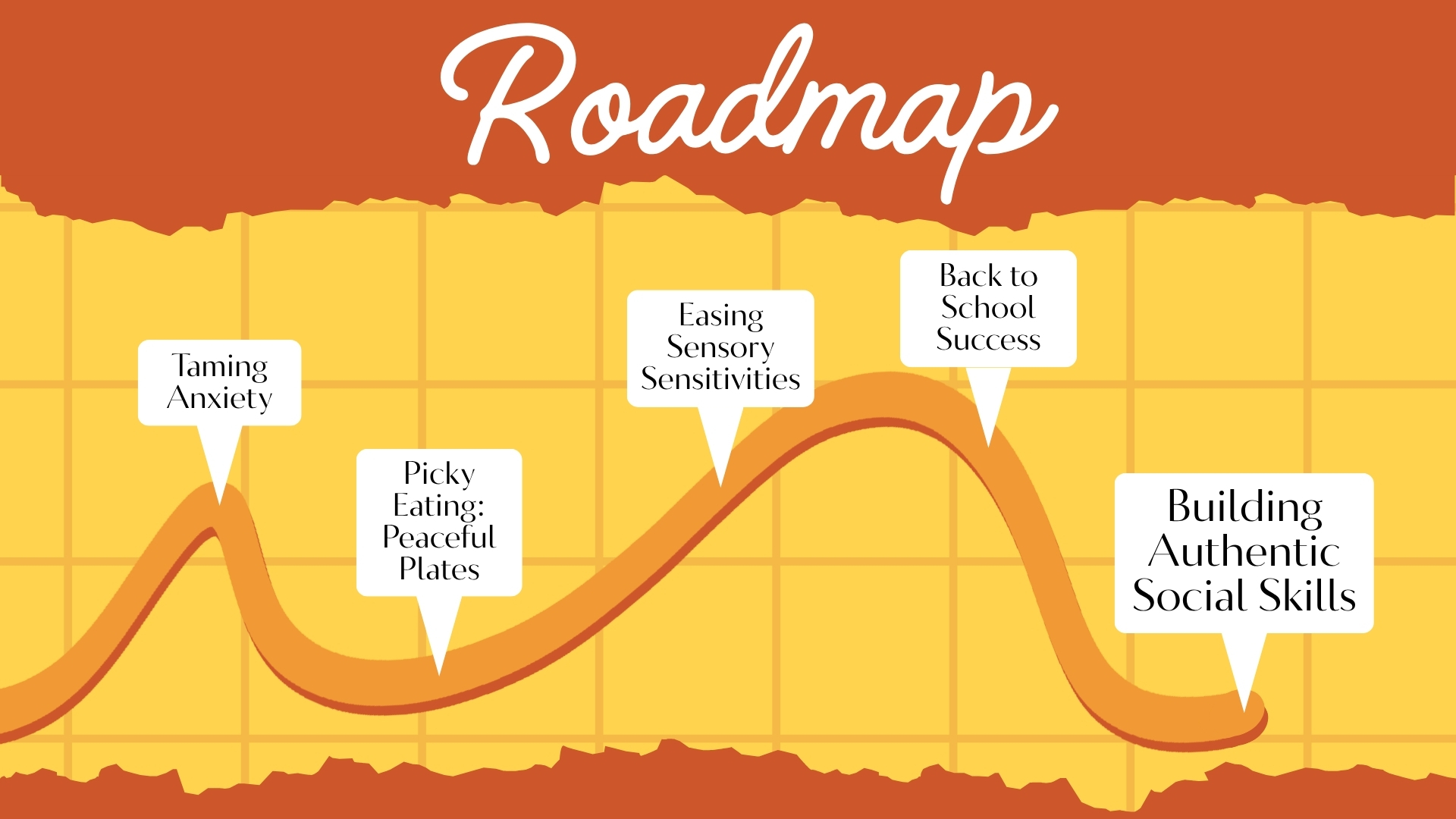 Each month, we’ll focus on a specific area of your child’s development or a challenge you’re navigating that are common for neurodivergent kids, like managing meltdowns, sensory sensitivities, or impulse control. Even better, as a member, you unlock access to all past roadmaps, so you’ll have a treasure trove of strategies right at your fingertips.