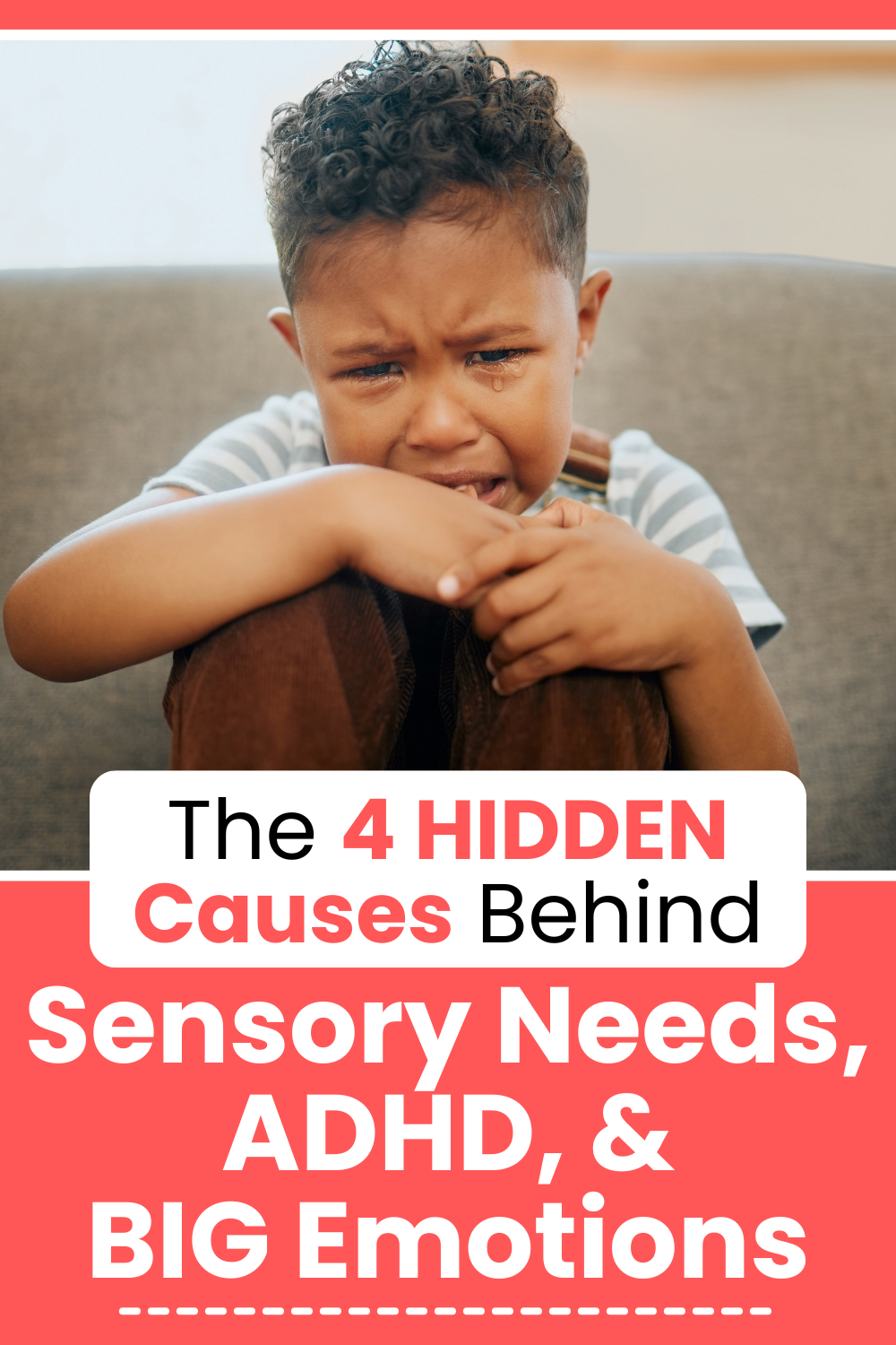 Alright, second hidden cause. It is sensory processing. Oh my gosh, if you’ve been around your kid’s table for long, you know that I talk a lot about sensory. It is my heart. It has been a major part of my practice as OT and how I see and work with children, including my own. But sensory can be really sneaky. And so even if you think you have an understanding of sensory, I want to challenge you to just be open to the fact that there might be more, because we have eight senses. That’s right, eight, not the five you learned about in school. And they do include registering things like our emotions on the inside of our body. That is part of our sensory processing.